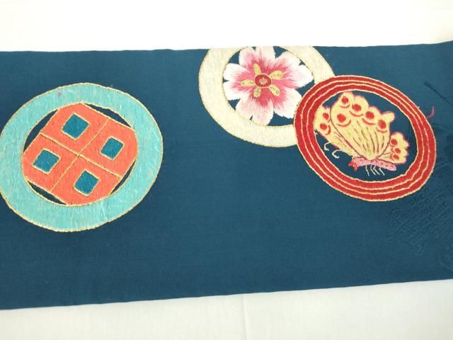 平和屋着物 アンティーク 大正ロマン 九寸名古屋帯 駒刺繍 花蝶丸文 金糸 正絹 DAAX3375azの検索結果