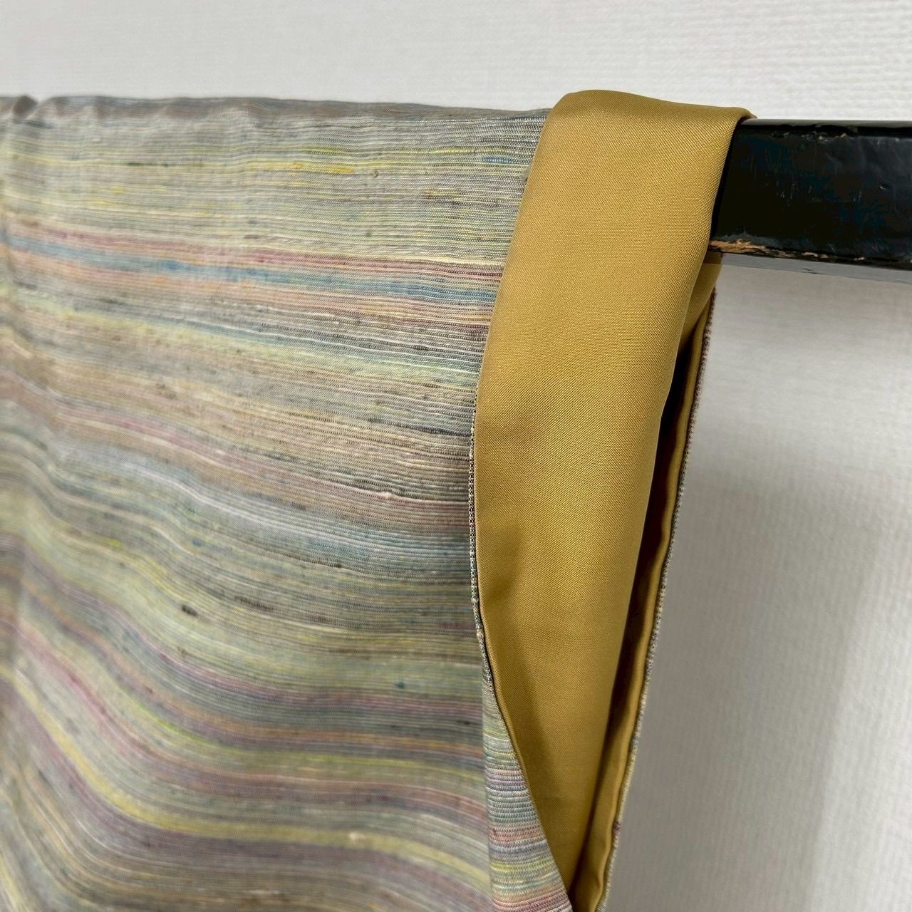 紬 身丈156cm 裄丈65cm M 袷 証紙 幾何学模様 黄土色 正絹 秀品