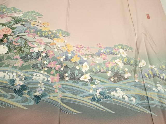 平和屋着物 十日町友禅作家 岡村蒼風 松竹梅立波枝花文 暈し染め 正絹 CAAX6336zeの検索結果