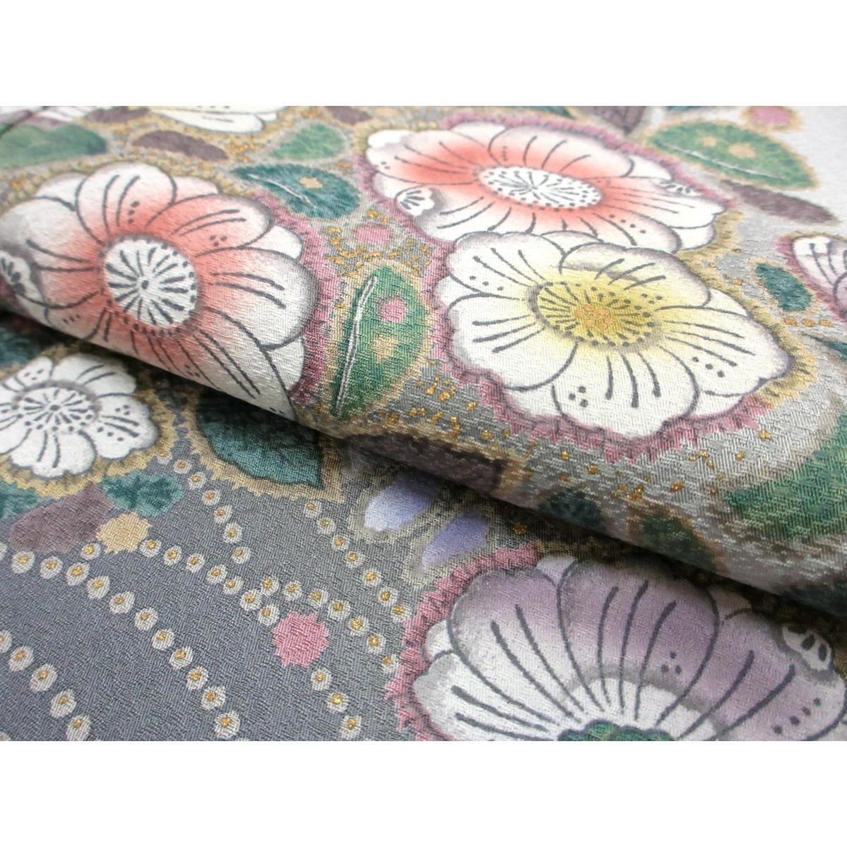 訪問着 袷 レディース 正絹 灰紫 花柄 モダン 身丈159cm 裄丈66cm 結婚式 パーティ Mサイズ相当