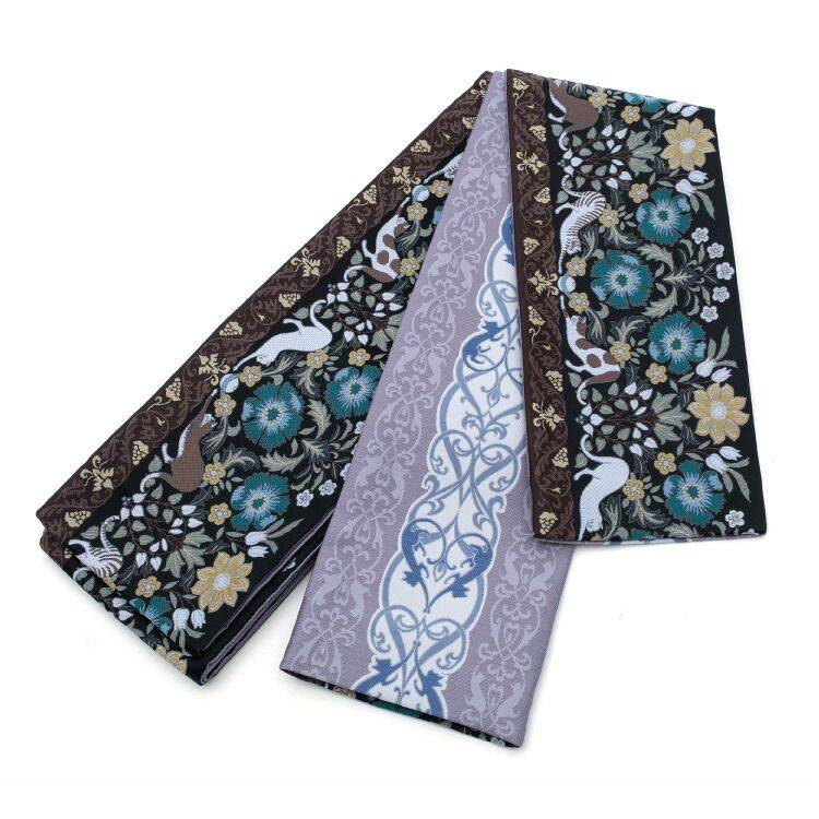 半幅帯 nico by WA KKA Cat s away 黒 ブラック KS-HE-010-01 リバーシブル 猫 ねこ 花柄 浴衣 長尺 ゆかた 細帯 半巾帯 細帯 紬 小紋 浴衣 洒落着 hanhabaobi-00071 GLOBALQUALITYIMPORTS_COM