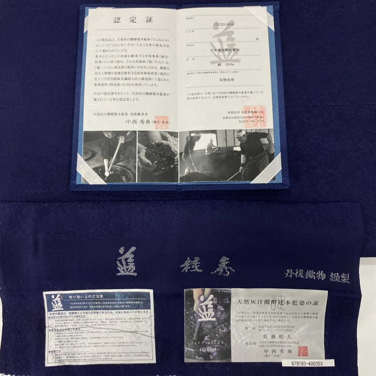 道中着 身丈99.5cm 裄丈66cm M 佐藤昭人 やまと 和装コート 着物衿 落款 証紙 地紋 藍色 正絹の検索結果