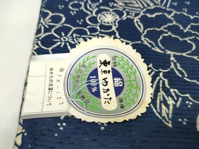 平和屋本店 夏物 竺仙鑑製 浴衣 反物 着尺 杜若 紺地 証紙付き 綿 DZAA11297kh5