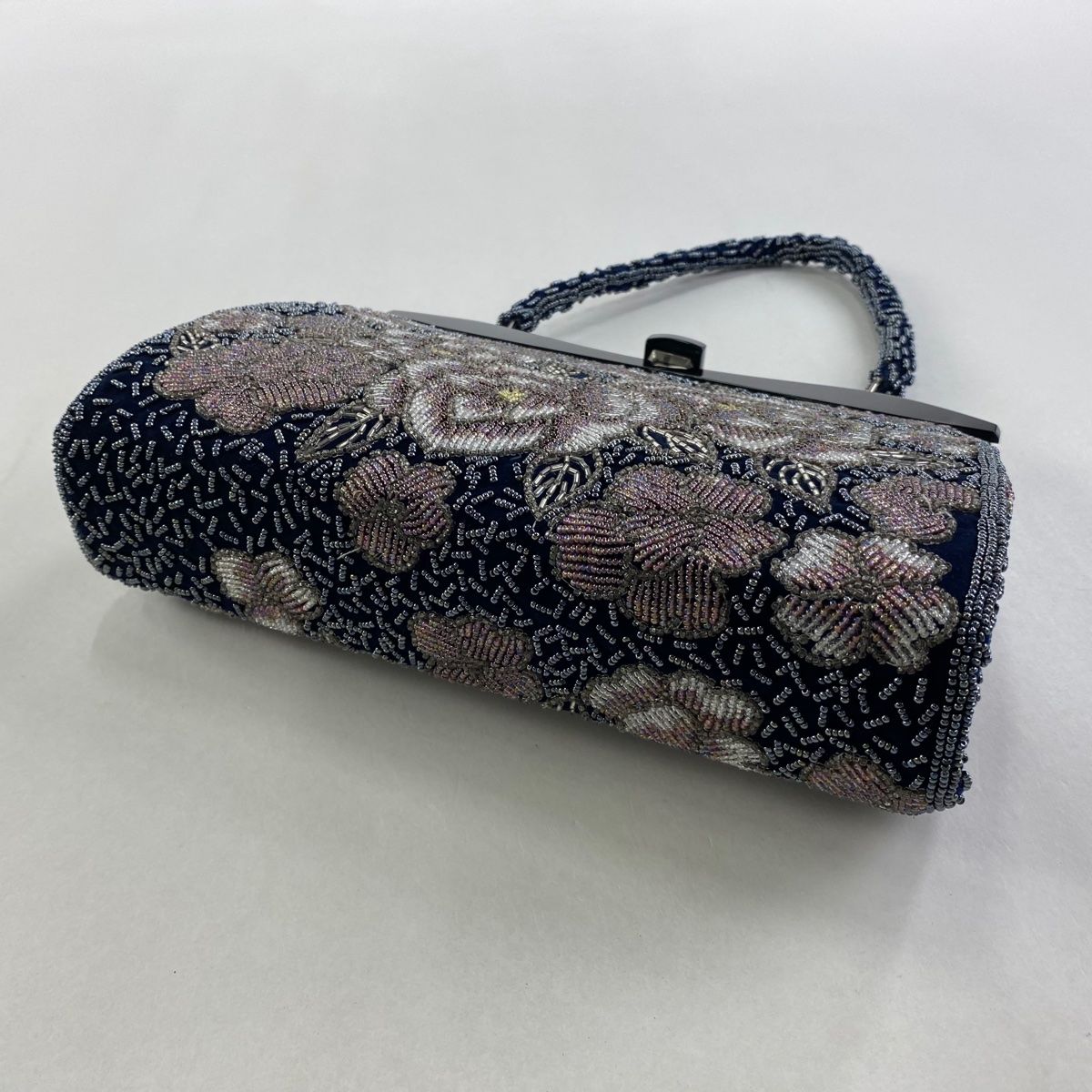 和装バッグ 秀品 ビーズバッグ フォーマル 幾何学 紺色 ビーズ 和装小物