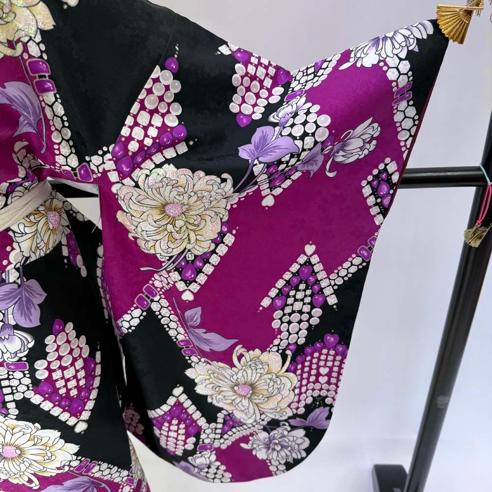 二尺袖 単品 卒業式着物 黒 紫 裄67cm Lサイズ 袴用着物 化繊 4675の検索結果
