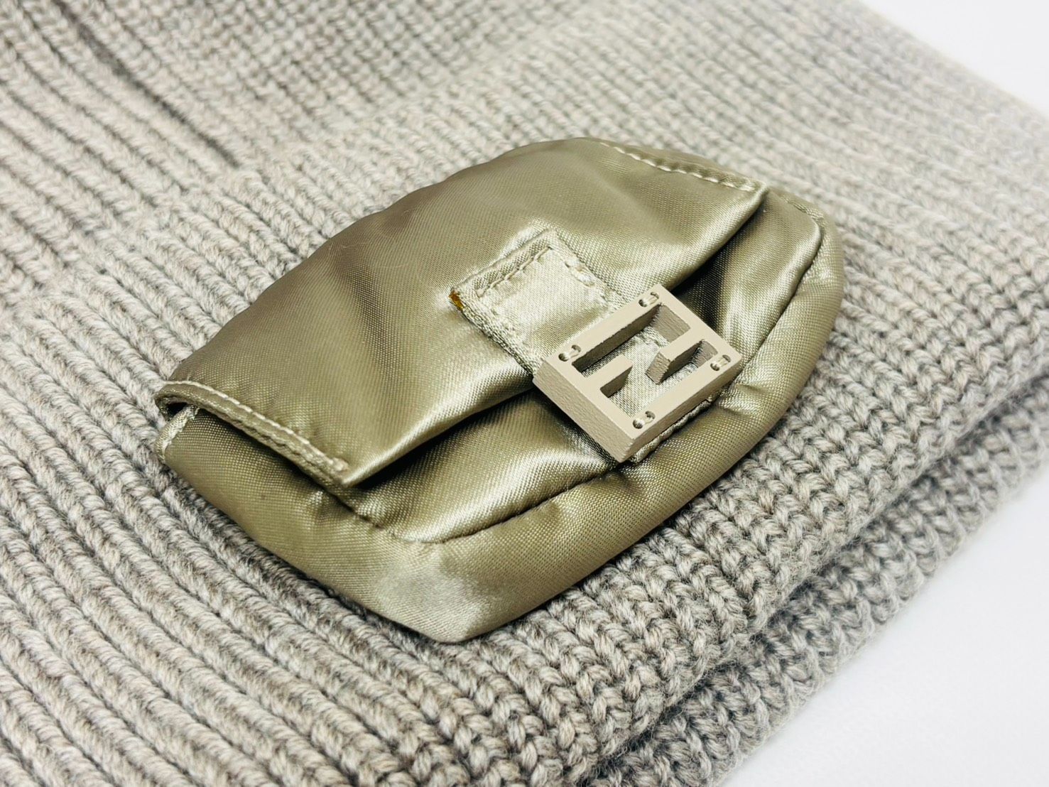 FENDI フェンディ ウール ニットキャップ ニット帽子 バゲットバッグポーチ付き FXQ938 #S M グレージュ K31427 GLOBALQUALITYIMPORTS_COM