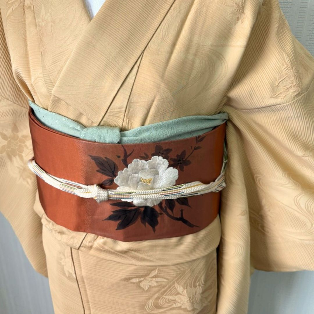 ✅ 牡丹柄帯が華やかで上品なアクセント
