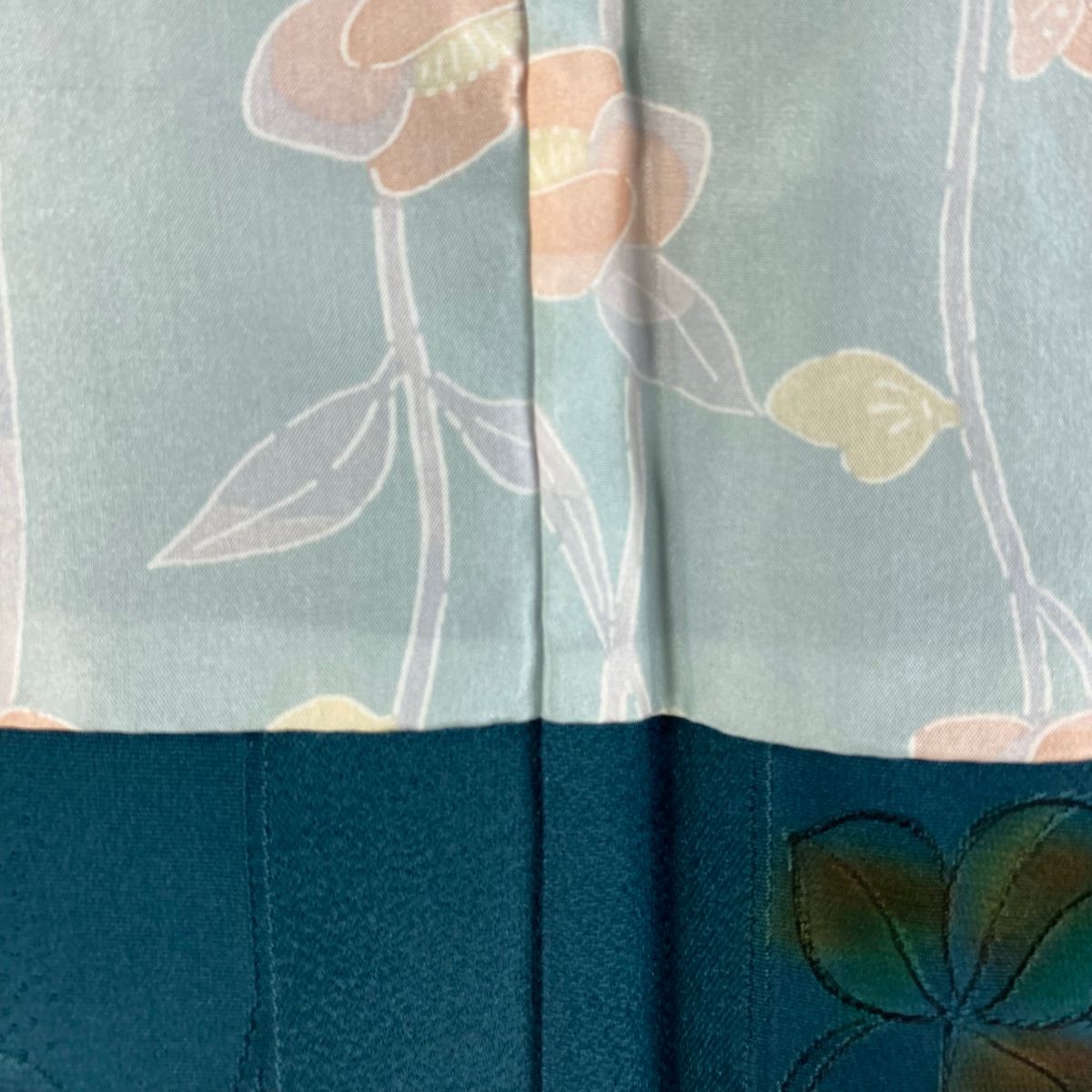 道行 身丈106cm 裄丈67cm M 和装コート 角衿 リバーシブル 地紋 花唐草 ぼかし よもぎ色 正絹