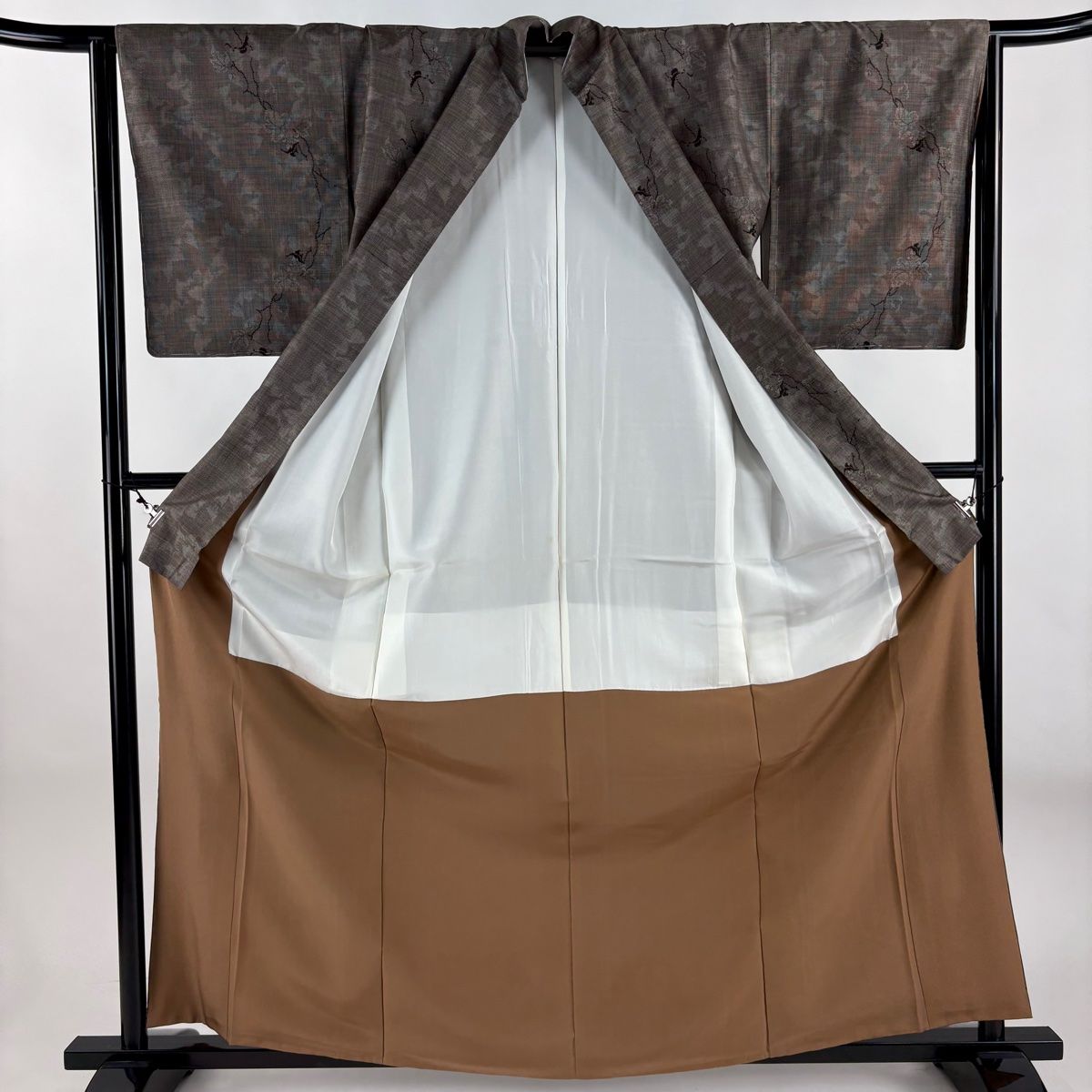 紬 身丈163cm 裄丈64.5cm M 袷 草花 灰茶 正絹 秀品の検索結果