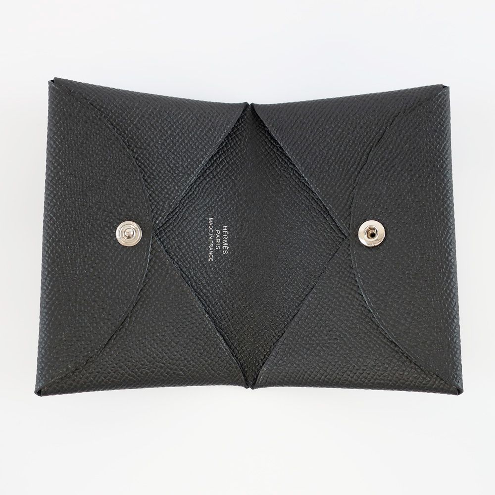 天白 HERMES エルメス カルヴィ ブラック ノワール エプソン カードケース 名刺入れ 二つ折り 黒 シルバー金具 B刻印 頃製造 GLOBALQUALITYIMPORTS_COM