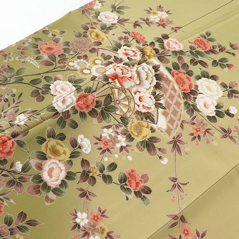 訪問着 袷 レディース 正絹 黄ベージュ 花柄 身丈164.5cm 裄丈65cm 式典 入学式 卒業式 七五三 Mサイズ相当 GLOBALQUALITYIMPORTS_COM