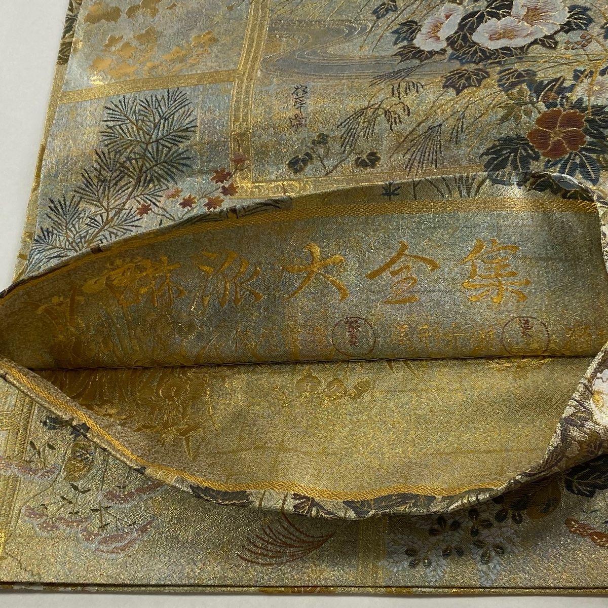 丸帯 光琳大全集 草花 鳥 金糸 箔 金色 お太鼓柄 正絹 GLOBALQUALITYIMPORTS_COM