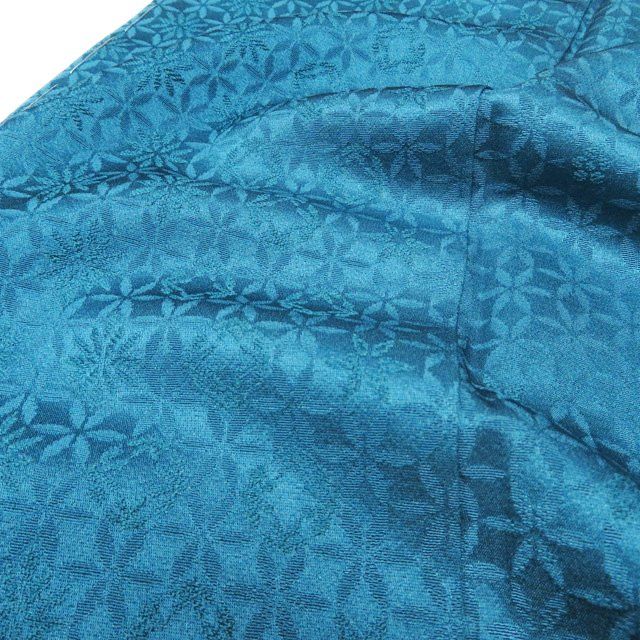 特選 色無地 着物 正絹 袷 カジュアル 紋なし 地模様 変わり七宝模様 孔雀緑色 身丈163.5cm 裄68cm L ワイド きもの北條 A1275-5 GLOBALQUALITYIMPORTS_COM