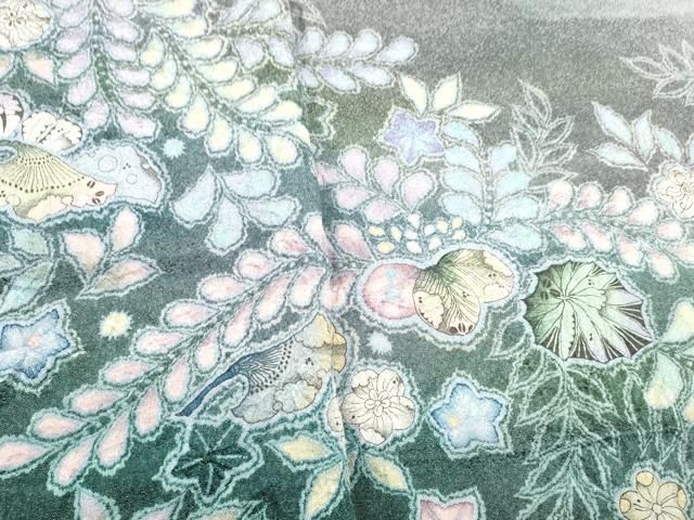 平和屋着物 越後十日町の一流染匠 桐屋 翠山工房 徳永憲峯 付下げ 解き反物 着尺 八掛付き 辻が花 銀通し地 DAAW7646zzz GLOBALQUALITYIMPORTS_COM