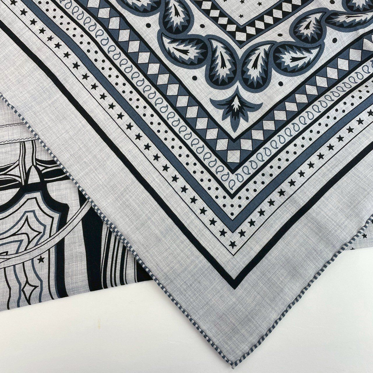 Hermès エルメス Châle 140 Les Roues de Phaéton カレジュアン140 四輪馬車の車輪 カシミア70 シルク30 gris chiné ardoise clair Black GLOBALQUALITYIMPORTS_COM