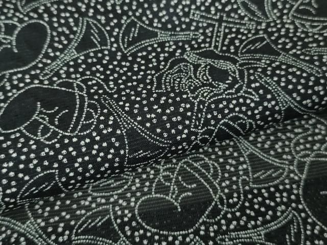 コート 道中着 着物 正絹 ポリエステル MUGETU 無月 刺繍 黒色 薄灰色 金 身丈101cm 裄64cm きもの北條 A1274-1