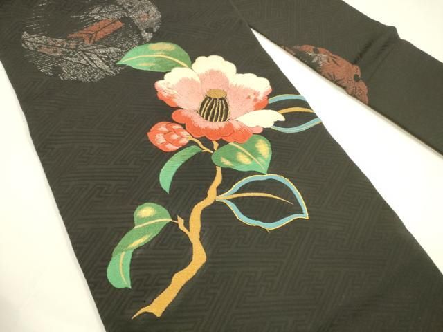 平和屋着物 アンティーク 大正ロマン 九寸名古屋帯 総刺繍 枝花文 雪輪矢羽文 黒地 金銀糸 正絹 DAAY8230cm GLOBALQUALITYIMPORTS_COM