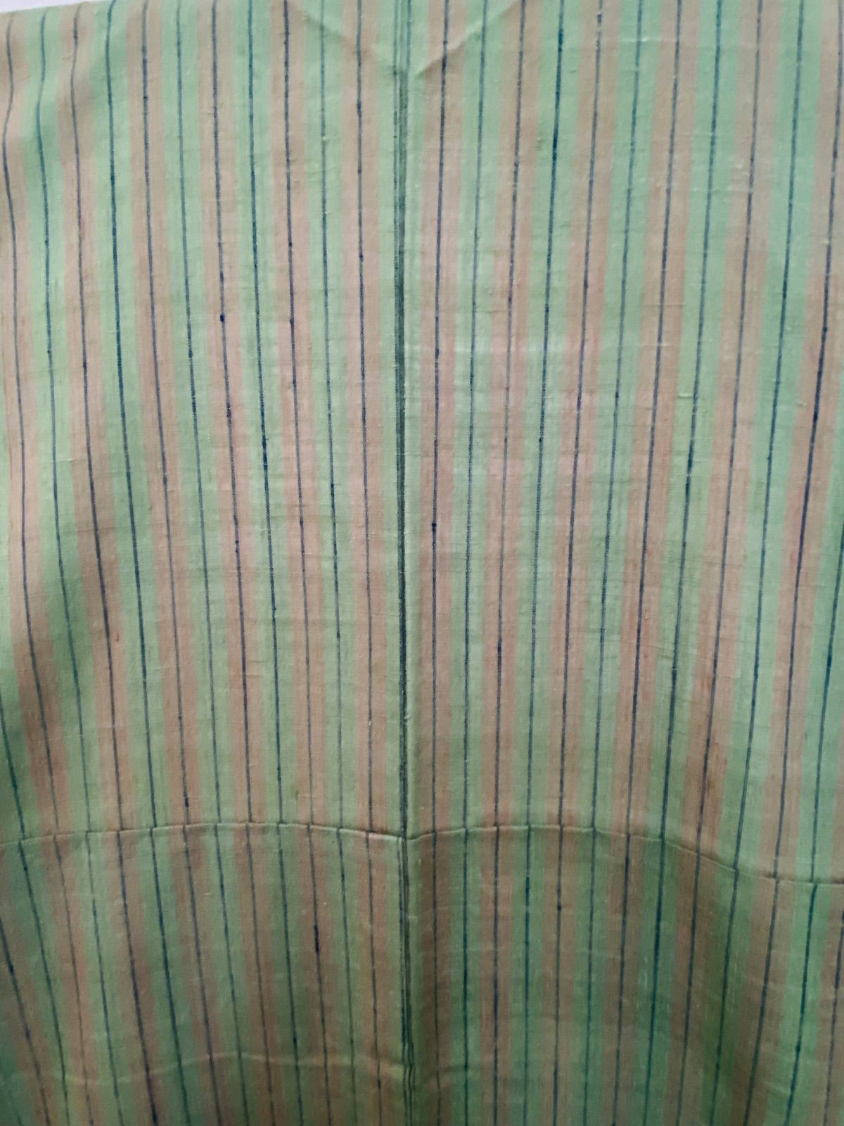 着物 紬 正絹 作家物 太子間道 縦縞模様 袷 緑 オレンジ 着物 和装 OME371の検索結果