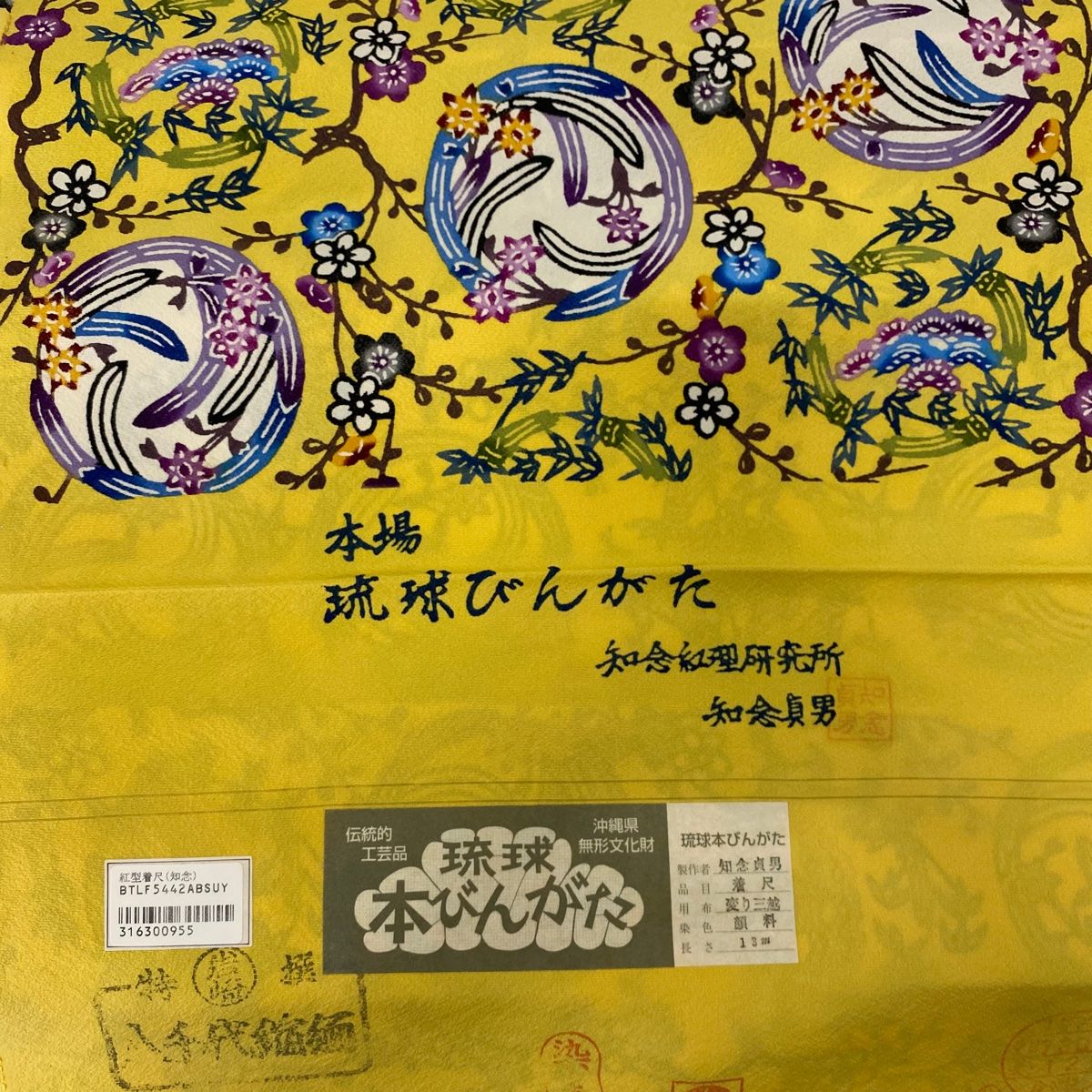 小紋 身丈161cm 裄丈67.5cm L 袷 知念貞男 琉球びんがた 落款 松竹梅 花丸文 黄色 正絹の検索結果