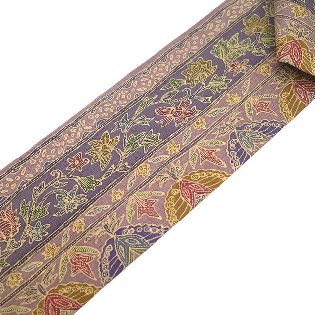 新古品 名古屋帯 正絹 紬 九寸 手織り 手描き くすみ紫 紫 花更紗 更紗 おしゃれ カジュアル 春 秋 冬 なごや帯 九寸名古屋帯 つむぎ 仕立て上がり みやがわ sb54688 GLOBALQUALITYIMPORTS_COM