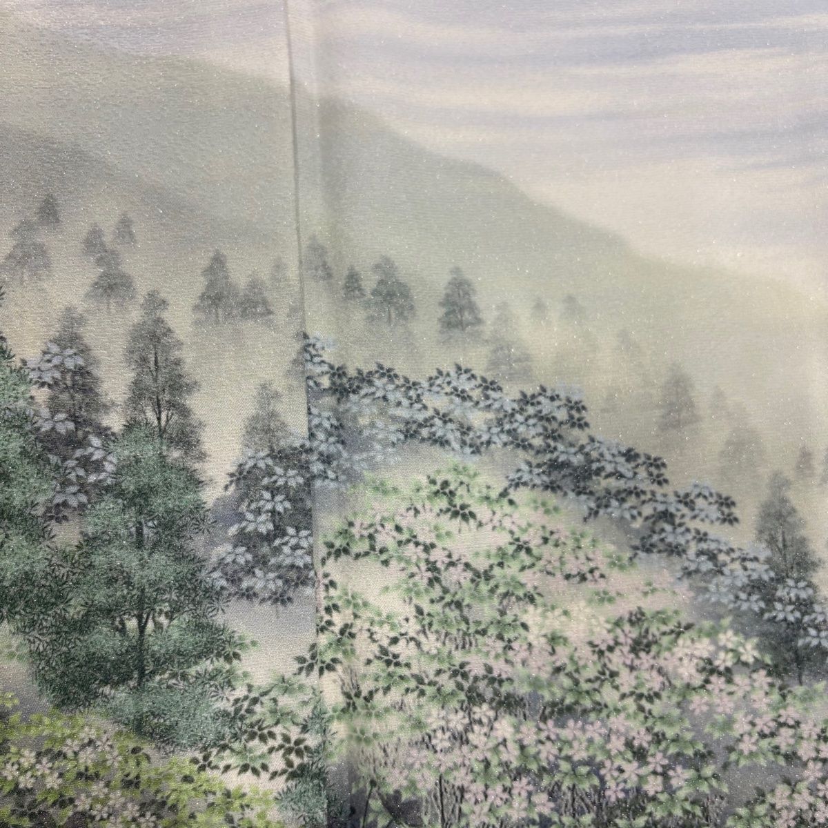 訪問着 身丈155cm 裄丈65cm M 袷 背抜き 樹木 遠山 ぼかし 銀通し クリーム 正絹 秀品の検索結果