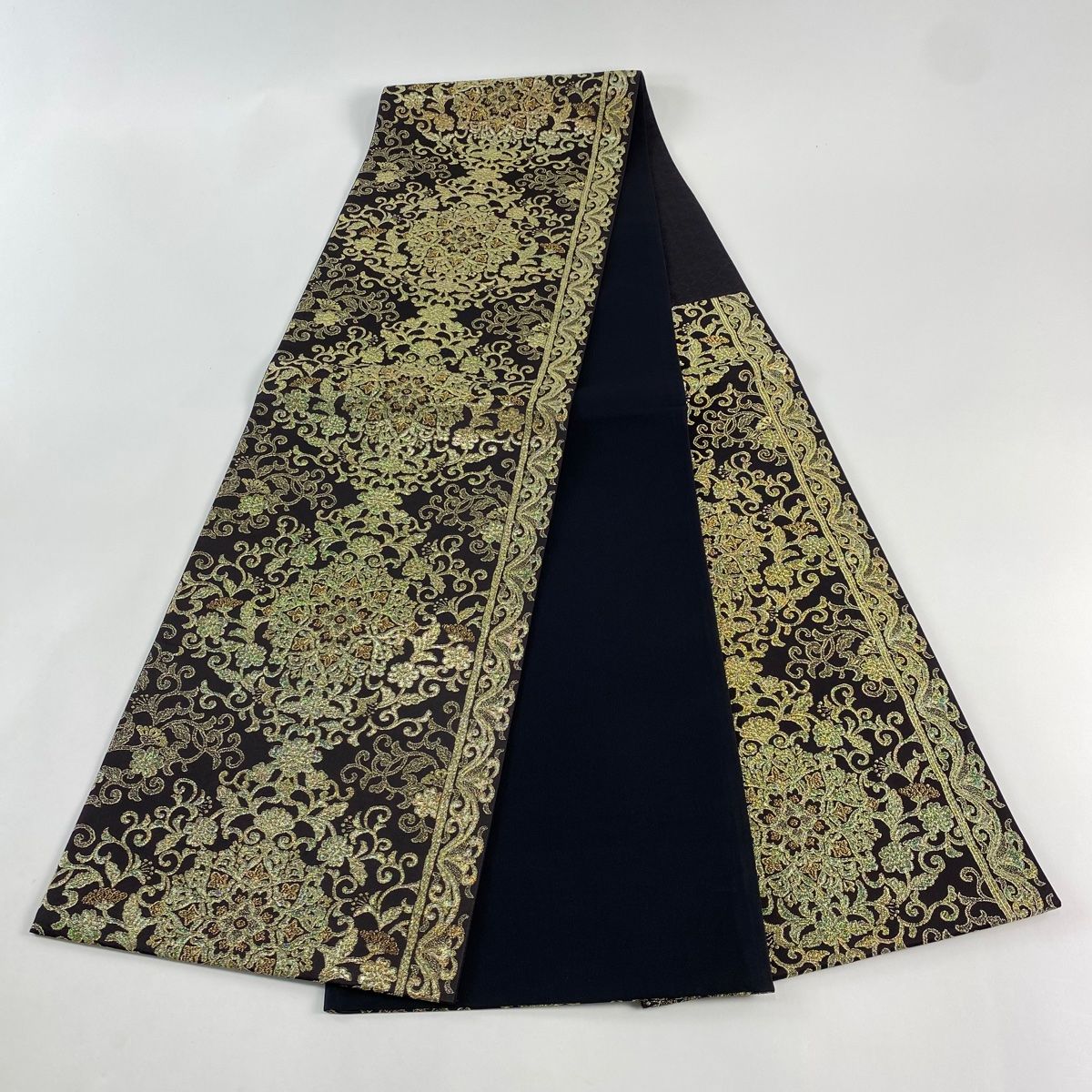 袋帯 秀品 華文 花唐草 箔 金糸 焦茶色 六通 正絹 GLOBALQUALITYIMPORTS_COM