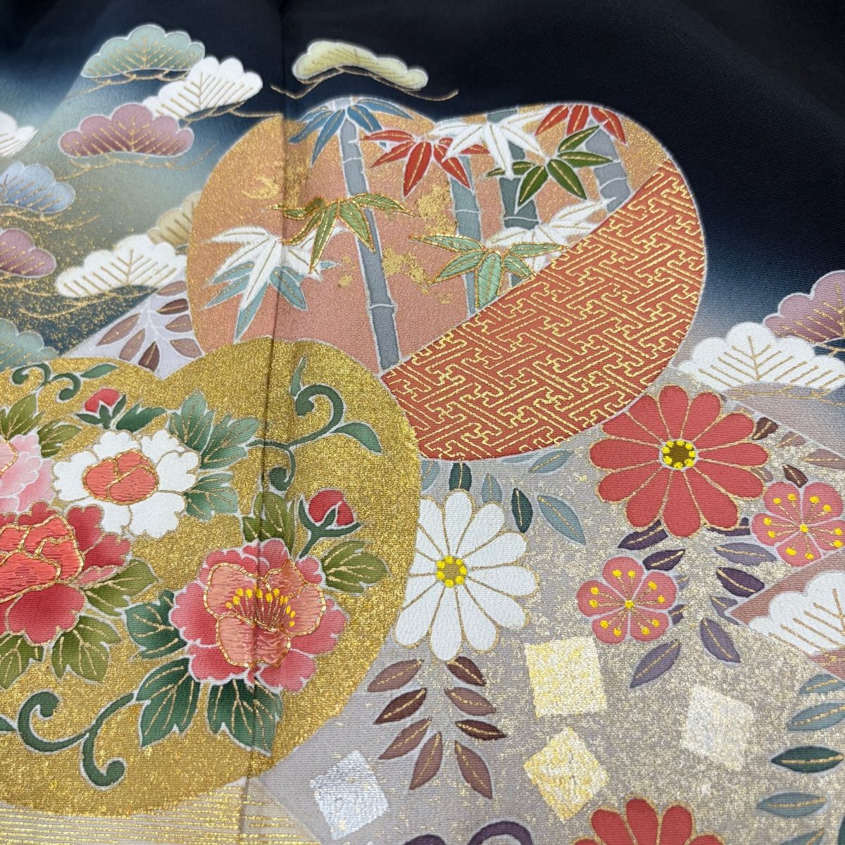 黒留袖 身丈167.5cm 裄丈65cm M 袷 松井青々 落款 団扇 松竹梅 金銀彩 刺繍 黒 正絹の検索結果