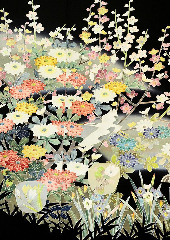 記念感謝祭 仕立無料 京友禅伝統工芸手描き美術染特撰黒留袖 加賀五彩四季花鶴舞文 10012358の検索結果