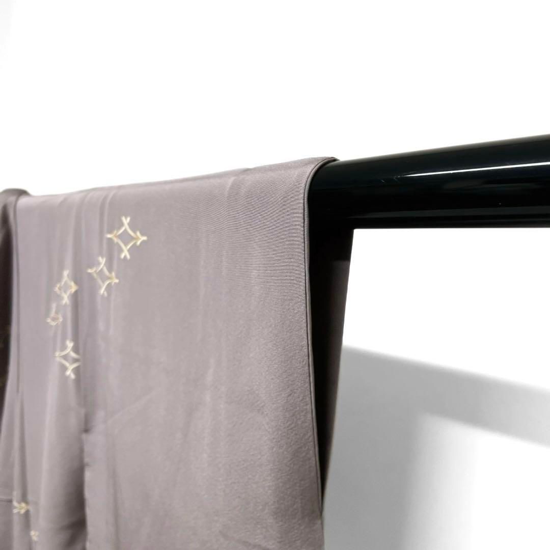 訪問着 身丈160cm 裄丈61cm S 袷 紬地 落款 紐 刺し子刺繍 灰紫 正絹