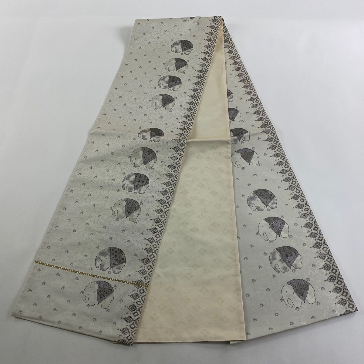 袋帯 菱屋善兵衛 落款 象 花 クリーム 全通 正絹 GLOBALQUALITYIMPORTS_COM