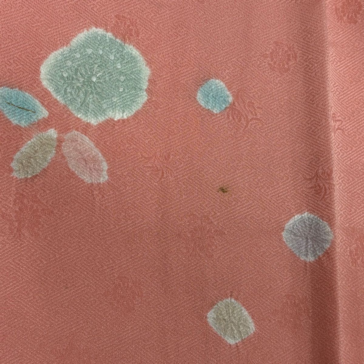 付下げ 身丈156cm 裄丈62.5cm S 袷 墨流し ぼかし サーモンピンク 正絹 一つ紋