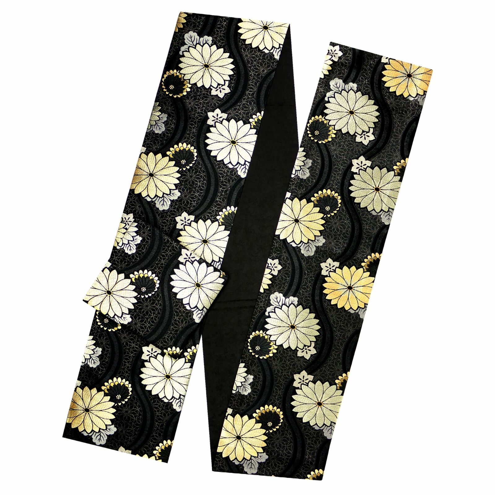 仕立て上がり フォーマル 袋帯 全通 古典 立涌 菊 ブラック ゴールド 黒 金 小杉織物 お仕立て上がり 留袖 結婚式 成人式 振袖用 訪問着用 正装 和装 GLOBALQUALITYIMPORTS_COM