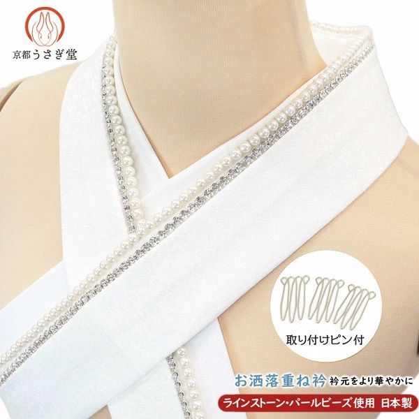 振袖用 重ね衿 パールビーズ ラインストーン e-034 桜 取り付けピン付き 振袖 成人式 重ねえり 重ね襟 京都うさぎ堂 WWW_GLOBALQUALITYIMPORTS_COM