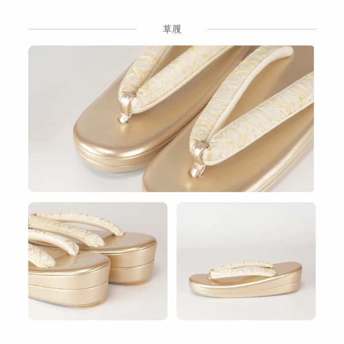 草履 白梅謹製 礼装用 Mサイズ 2枚芯 フォーマル シャンパンゴールド シルバー×白 24.0cm 牛皮底面