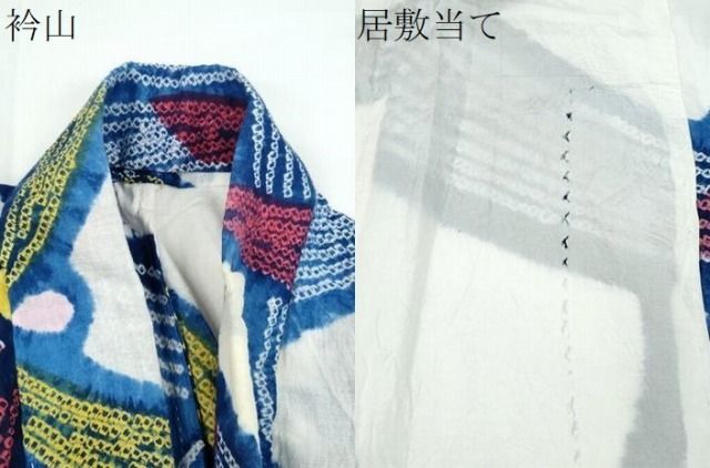 浴衣 身丈171cm 裄丈69cm L 絞り浴衣 幾何学模様 藍色 綿 秀品