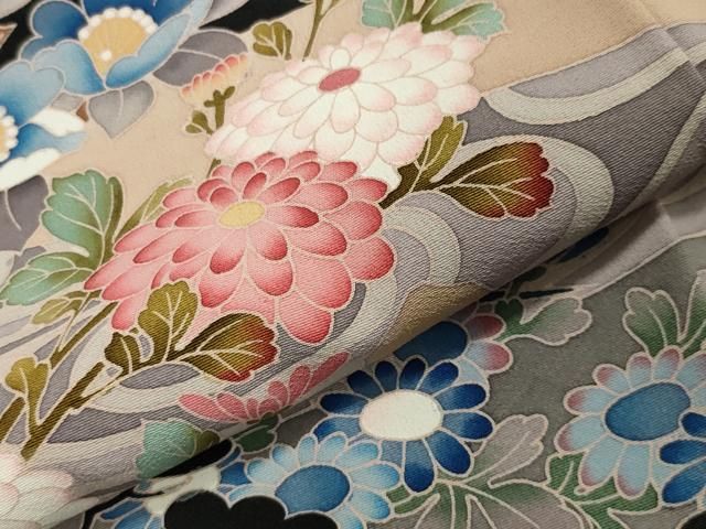 平和屋着物 豪華黒留袖 友禅 作家物 牡丹草花文 正絹 CAAW7722yc