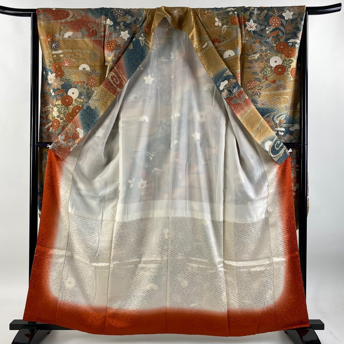 振袖 身丈160.5cm 裄丈65cm M 袷 扇面 草花 金糸 金彩 山吹茶色 正絹 秀品の検索結果