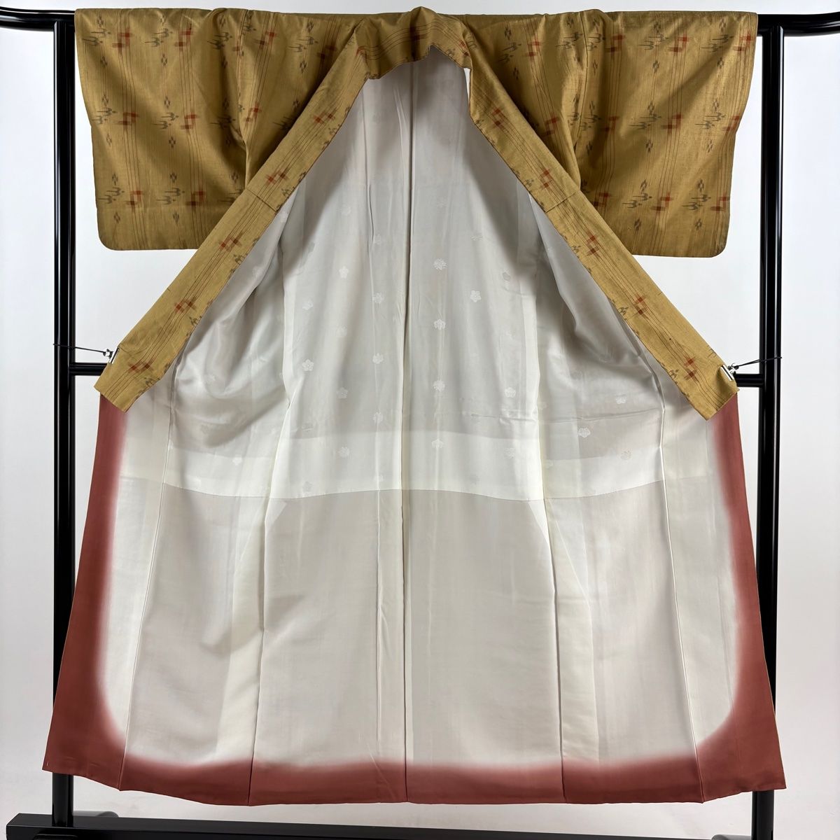 紬 身丈151.5cm 裄丈62cm S 袷 燕 井桁絣 黄土色 正絹 秀品の検索結果