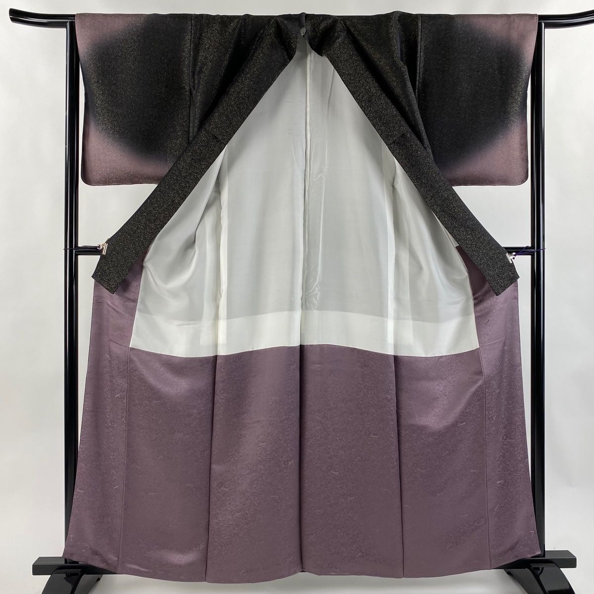 付下げ 身丈161.5cm 裄丈63cm S 袷 久保田一竹工房 落款 葉と実 裾ぼかし柄 金通し ぼかし 黒 正絹 WWW_GLOBALQUALITYIMPORTS_COM