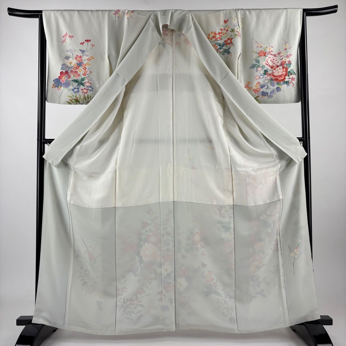 訪問着 身丈163.5cm 裄丈65cm M 袷 土田双園 加賀友禅 落款 草花 牡丹 薄緑 正絹 秀品 GLOBALQUALITYIMPORTS_COM