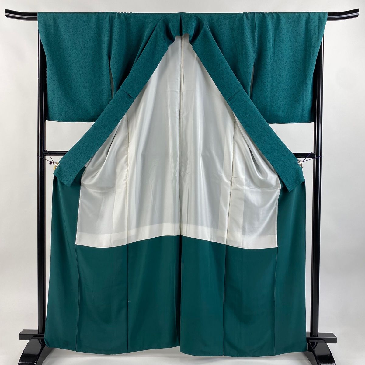 江戸小紋 身丈164cm 裄丈67cm M 袷 人間国宝 六谷梅軒 落款 蓑亀 青緑 正絹 GLOBALQUALITYIMPORTS_COM