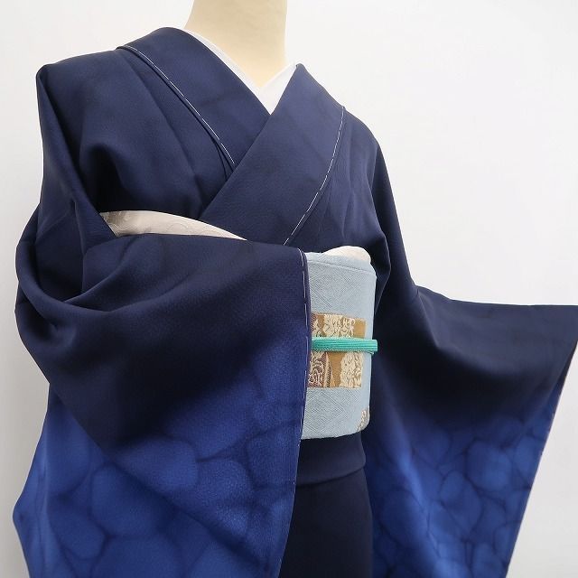 ❁tomihisa❁ やまと誂製 着物 正絹 仕付け糸付 藍染 藍染の静けさが凛とした美しさを引き立てる 付下げ 6909 GLOBALQUALITYIMPORTS_COM
