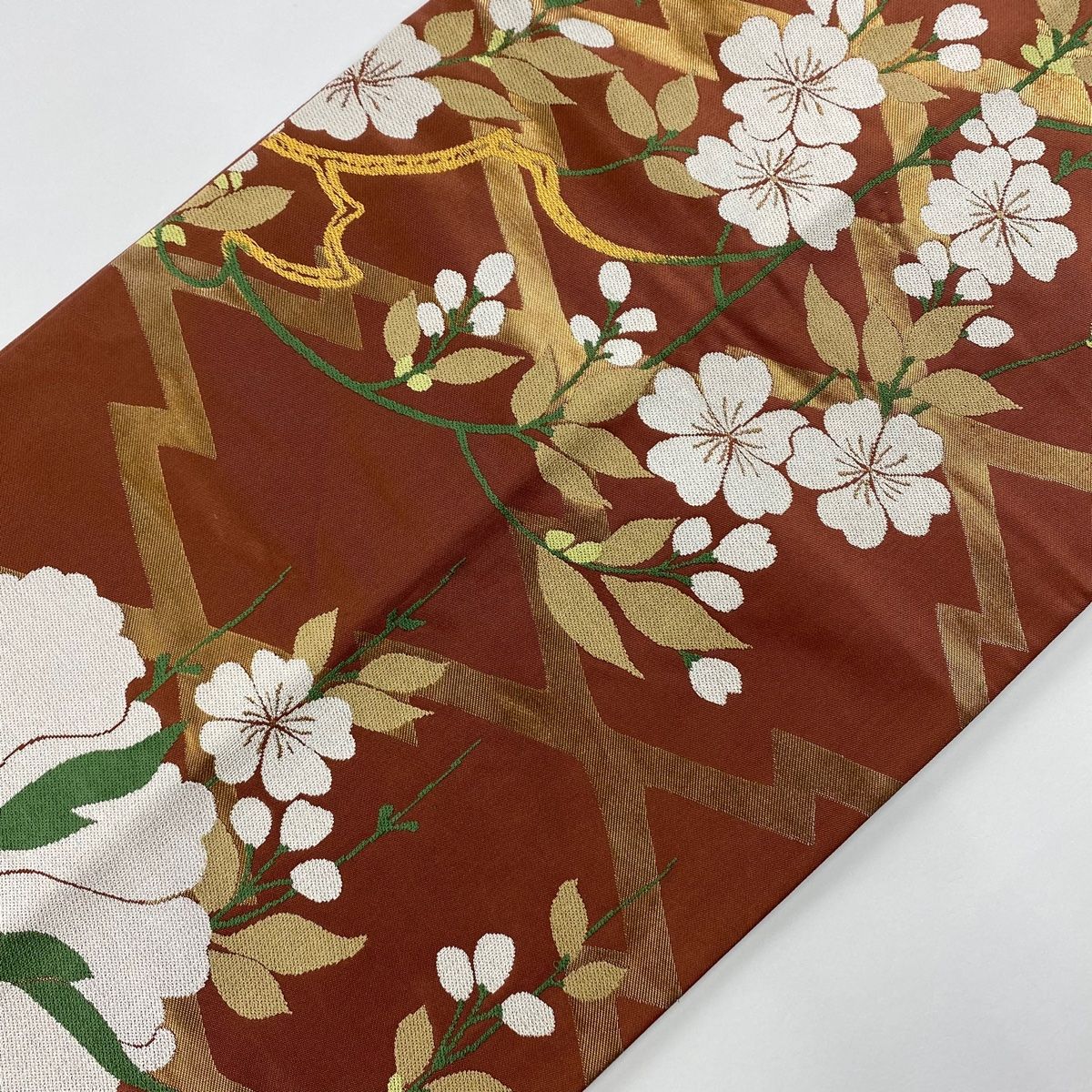袋帯 辻村ジュサブロー 落款 関西仕立て 桜 松皮菱 茶色 六通 正絹の検索結果