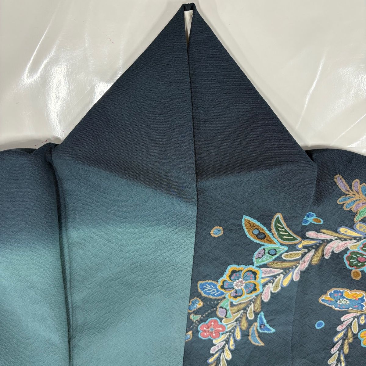 訪問着 身丈160.5cm 裄丈63.5cm S 袷 草花 藤 絞り ぼかし 青緑 正絹 WWW_GLOBALQUALITYIMPORTS_COM