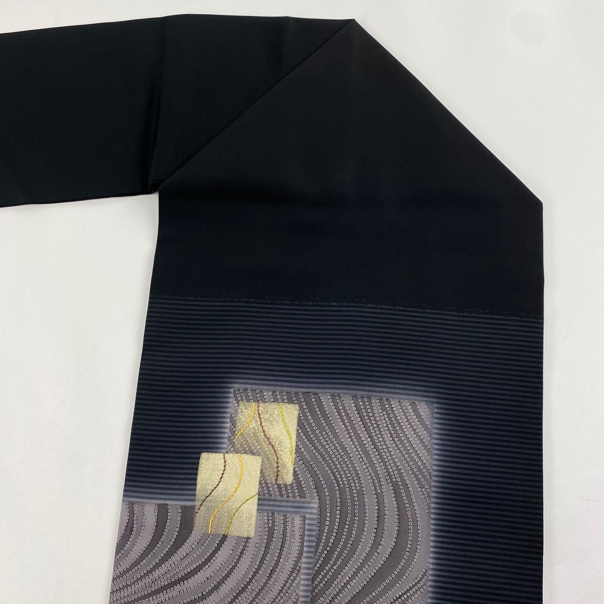 名古屋帯 秀品 幾何学模様 縞 金糸 金彩 黒灰 正絹 GLOBALQUALITYIMPORTS_COM