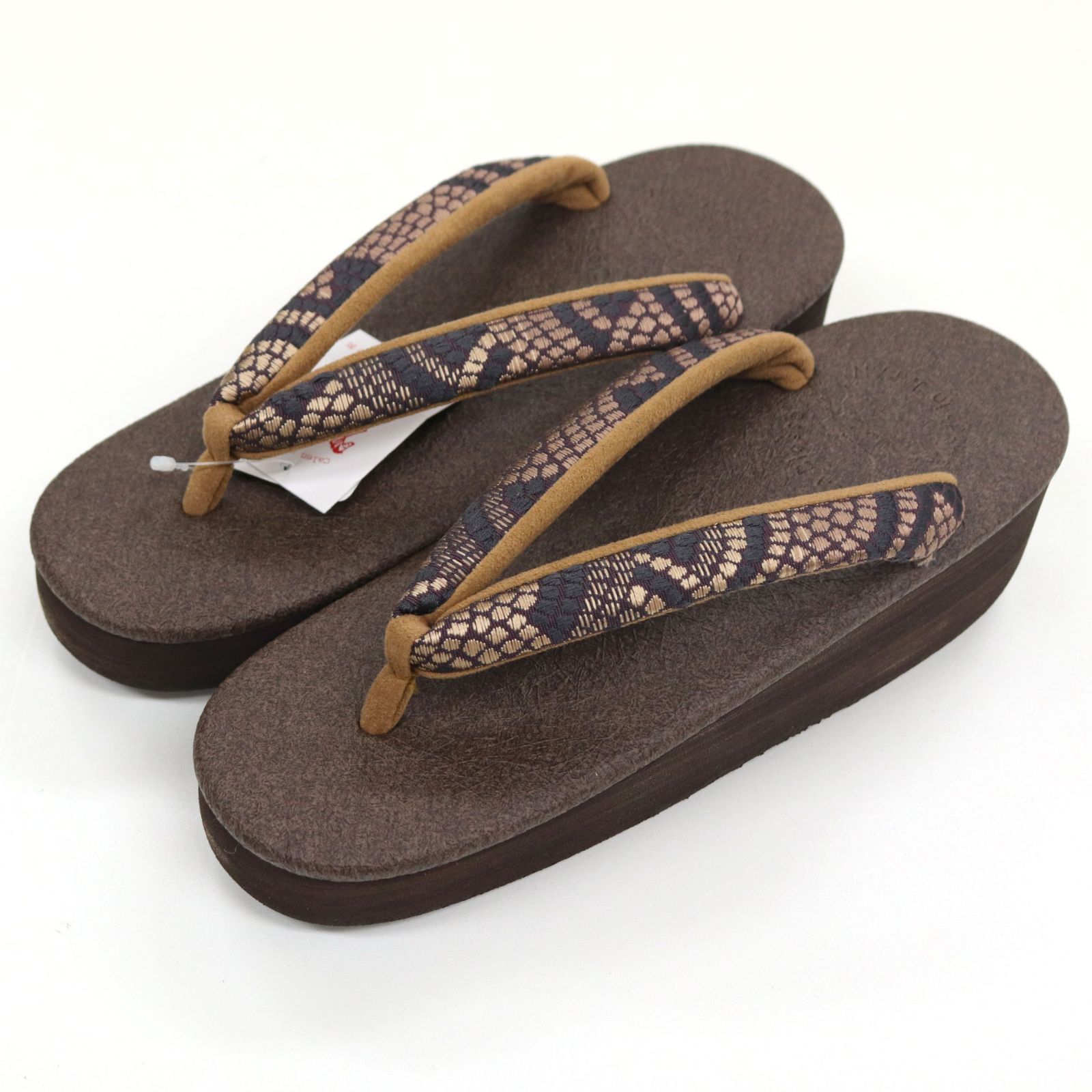 sa3403 菱屋カレンブロッソ 博多織 鼻緒使用 カフェ草履 焦げ茶 ビブラムソール Mサイズ GLOBALQUALITYIMPORTS_COM