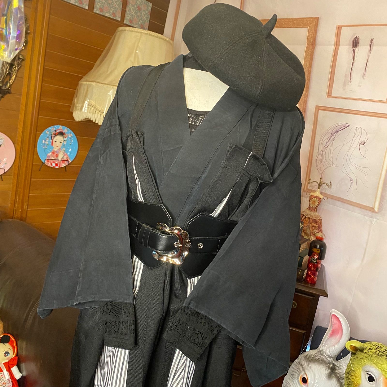 夏羽織り 和装 多系統コーデ 異素材ミックス レトロ クラシカル 和洋折衷 セレクト 古着 黒 ブラック 系 3点セット C-97の検索結果