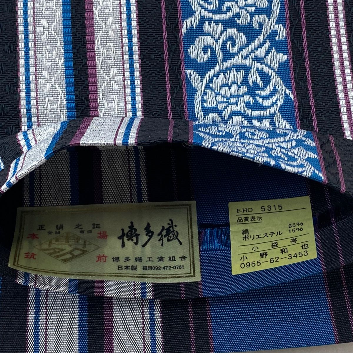 半幅帯 証紙有 博多織 縞 花唐草 黒 正絹の検索結果