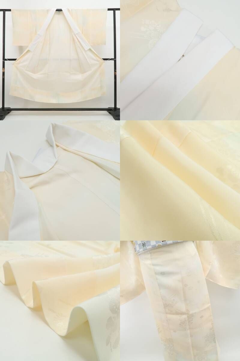 ❁tomihisa❁ 菊 梅 着物 正絹 仕付け糸付 薄卵色に咲く菊と梅の気品 長襦袢 7091の検索結果