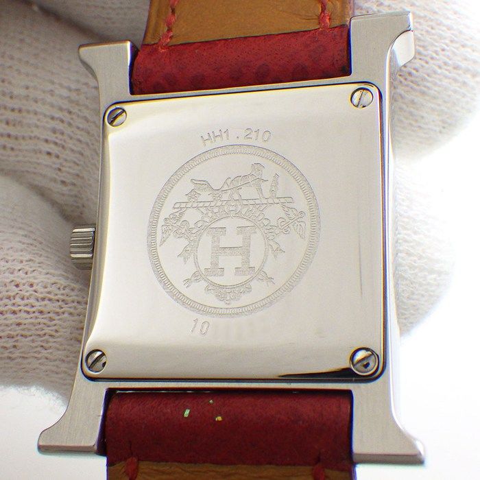 エルメス HERMES 腕時計 Hウォッチ HH1.210 スクエア ホワイトギョーシェ文字盤 レッド 革ベルト SS クオーツアナログ WWW_GLOBALQUALITYIMPORTS_COM